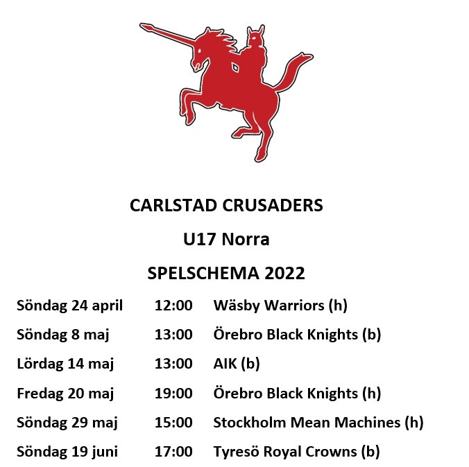 Carlstad Crusaders är ”sist ut” i Superserien för herrar där samtliga motståndare redan har två matcher under bältet. För premiärmotståndet står Örebro Black Knights som har inlett med två raka förluster. När: Söndag 17 april, 15.30 Var: Behrn Arena, Örebro Trots fyra lag i Superserien är det mycket som känns nytt inför säsongen. Många tippar en jämn serie med fyra lag som har olika styrkor. – Det är många nya ansikten runt om i ligan, så vi kommer få se spännande spelare som kommer att presentera sig för publiken som följer amerikansk fotboll. Det ska bli sjukt spännande med några riktiga bataljer i både Superserien och Scandinavian Cup, säger Daniel Holmgren, head coach för Carlstad Crusaders herrar. I Carlstad Crusaders trupp har det hänt en hel del, med en rejäl generationsväxling i stora delar av laget. – Det ska bli grymt kul att följa den här gruppen och vara med på resan vi kommer att växa som lag och utvecklas på individnivå. Vi har en ung och talangfull grupp av spelare, kryddat med några av de bästa spelarna på sina positioner i Sverige, säger Holmgren. – För oss kommer en stor nyckel vara utveckling under säsongen och att vi jobbar hårt för att inte göra samma misstag flera gånger samtidigt som vi spelar med glädje och entusiasm. Söndagens premiär i Superserien blir också säsongspremiär. Mot ett Örebro Black Knights som redan fått mäta sina krafter mot Stockholm Mean Machines (förlust 26–23) och Tyresö Royal Crowns (förlust 35–16). – Självklart hade det varit bra med någon form av träningsmatch innan vi kastar oss in i hetluften, men det är inget vi kan ändra på nu. Vår startpunkt är att Örebro har två matcher och vi får se positivt på att vi har mycket matchfilm att scouta från, vilket har gett oss en bra bild av vad vi troligtvis kommer att ställas mot, säger Holmgren. – Hur som helst så känner jag verkligen att grabbarna är redo! Preliminära starter, offense: 14 - RB Alexander Segerfeldt 7 - QB Timothy Morovick 54 - OL Anton Hyvönen 56 - OL Isak Berg 55 - OL Oliver Landström 52 - OL Michael Henriksson 53 - OL Marco Gudding 9 - WR Kevin Börzei 81 - WR Elias Johansson 1 - WR Davarus Shores 12 - WR Albin Forsman Defense: 19 - DL Olof Flemström 8 - DL Adam Classon 95 - DL Linus Lindberg 41 - LB Lucas Hedberg 42 - LB Mattias Eriksson 3 - LB Erik Kyrk Gere 1 - LB Davarus Shores 9 - DB Kevin Borzei 31 - DB Filip Enbacker 32 - DB Elias Rosenkvist 2 - DB Per Gaarden